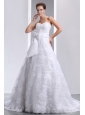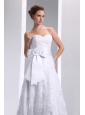 Home >  Wedding Dresses >  Latest Wedding Dresses > Popular A-line Sweetheart Hand Made Flower and Bow Wedding Dress Brush Train Taffeta and Lace