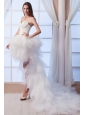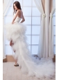 Infuse your special day with your signature esprit when you wear this Can-Can style gown dress. The strapless, sparkle studded bodice features a sweetheart-shaped neckline and contoured waist. The bi-level skirt frills with feathery frou-frou ruffles to mini length in front, then flows to a fabulous full-length train in back.