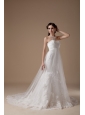 Popular A-line Wedding Dress Tulle Lace Brush Train