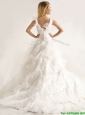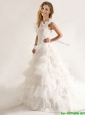 Popular Applique and Ruffled Layers Wedding Dresses with Deep V Neck