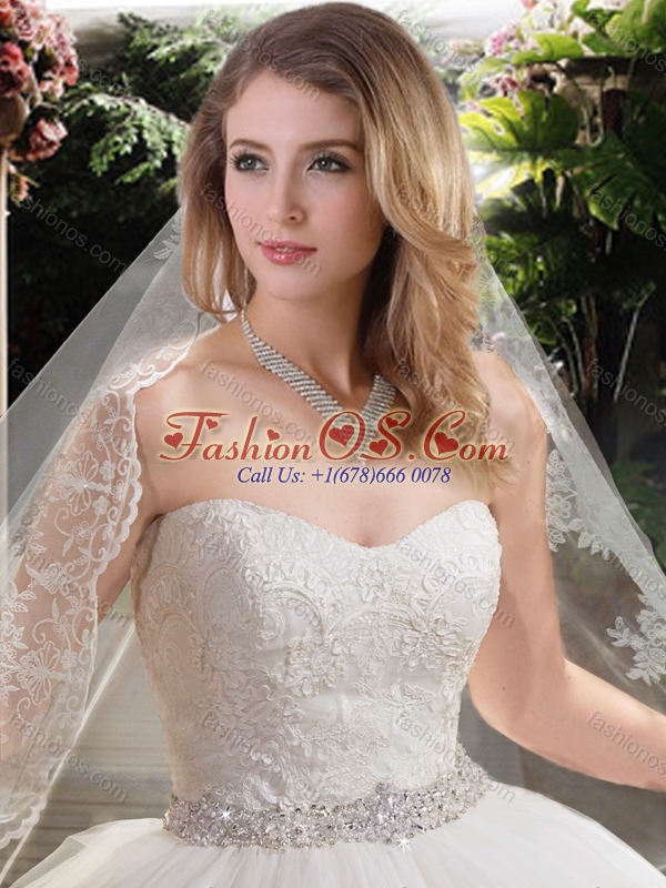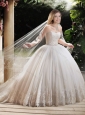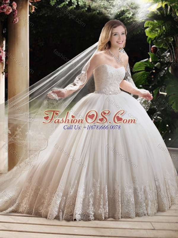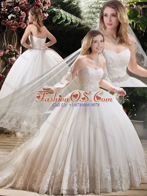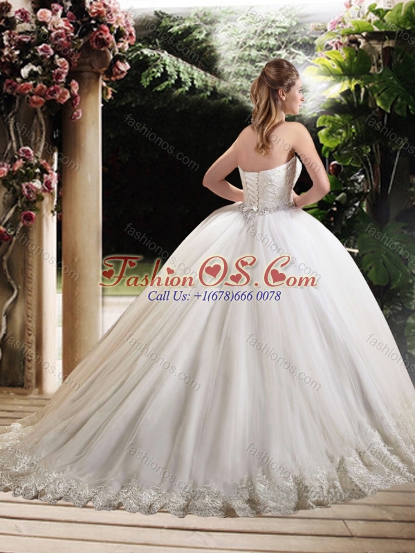 Popular Appliques and Beading Wedding Dresses with Brush Train