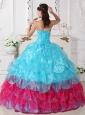 Home >  Quinceanera Dresses >  Fashionable Quinceanera Dresses > Popular Aqua Blue and Hot Pink Quinceanera Dress Strapless Organza Appliques Ball Gown