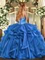 Popular Aqua Blue Ball Gowns Organza Sweetheart Sleeveless Beading and Ruffles Floor Length Lace Up Quinceanera Gown