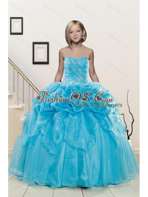 Home >  Special Occasion Dresses >  New Style Little Girl Pageant Dresses > Popular Aqua Blue Little Girl Pageant Dress with Appliques and Pick Ups for 2015