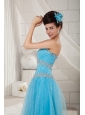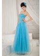 Popular Aqua Blue Prom Dress A-line Sweetheart Tulle Beading Floor-length