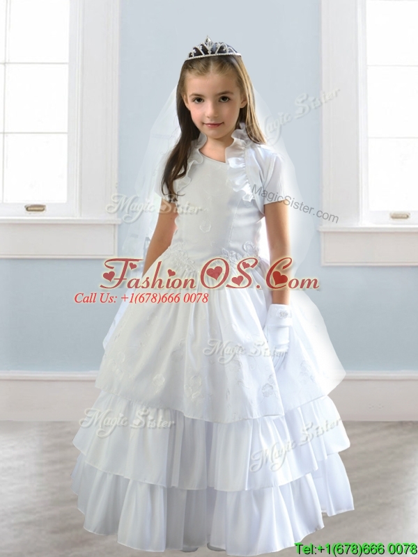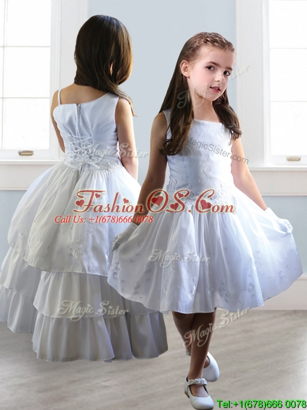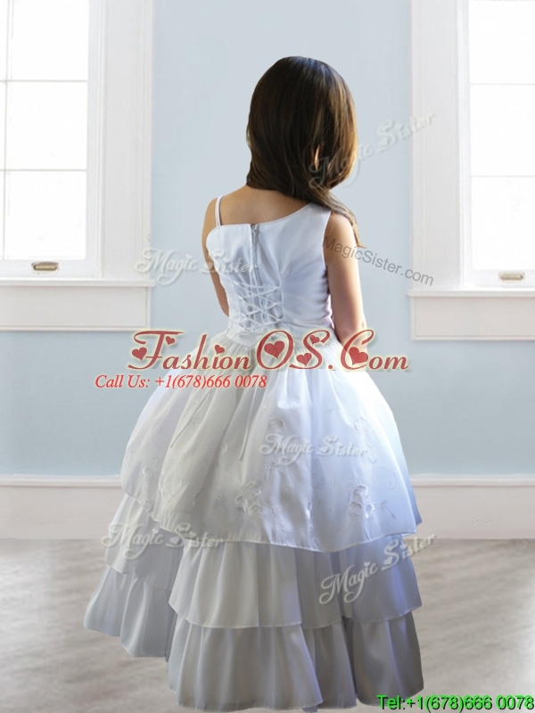 Home >  Special Occasion Dresses >  New Style Little Girl Pageant Dresses > Popular Asymmetrical Neckline Detachable Little Girl Pageant Dress with Appliques