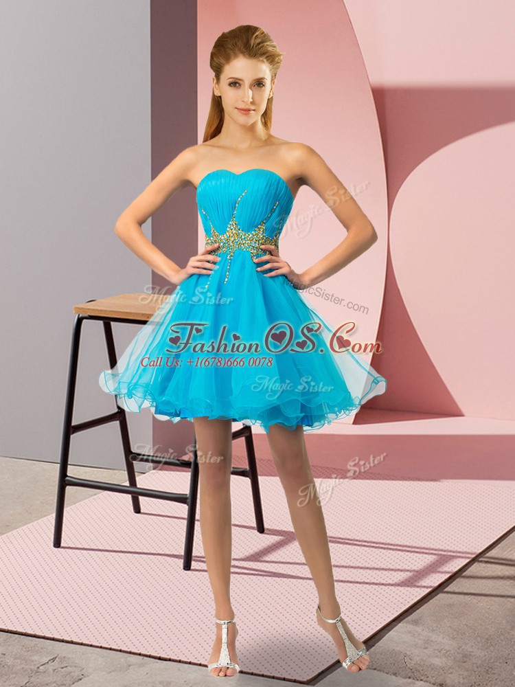 Popular Baby Blue Sleeveless Beading and Ruching Mini Length Cocktail Dresses