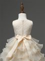 Popular Baby Pink Ball Gowns Scoop Sleeveless Organza Knee Length Zipper Lace and Ruffled Layers and Bowknot Little Girl Pageant Dress