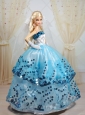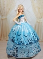 Popular Ball Gown Party Clothes White And Blue Quinceanera Doll Dress
