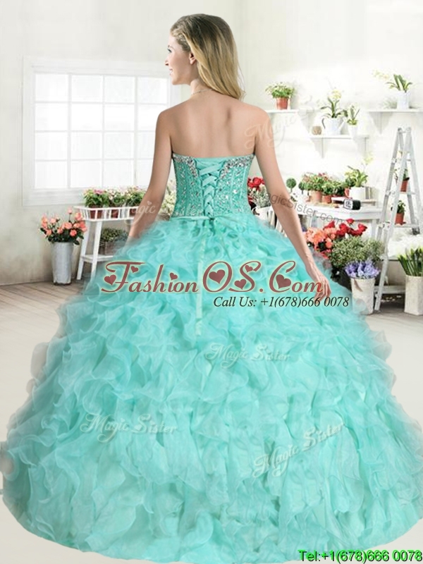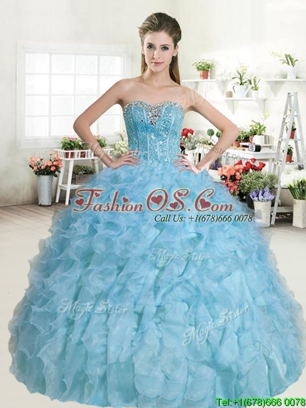 Popular Beaded and Ruffled Baby Blue Quinceanera Dress in Organza