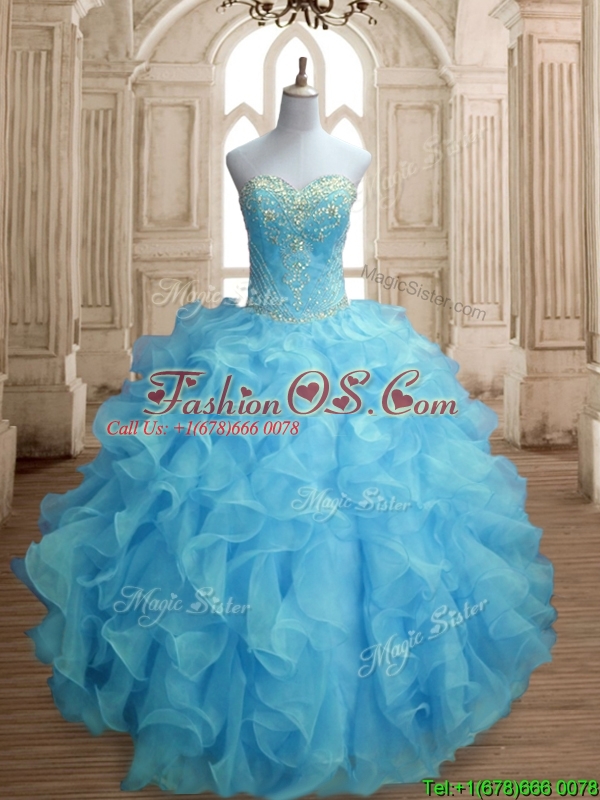 Popular Beaded and Ruffled Quinceanera Dress in Baby Blue