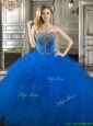 Popular Beaded Bodice and Ruffled Really Puffy Quinceanera Dress in Royal Blue