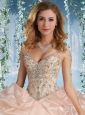 Home >  Quinceanera Dresses >  Popular Quinceanera Dresses > Popular Beaded Decorated Cap Sleeves Quinceanera Dress with Deep V Neck