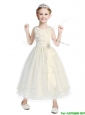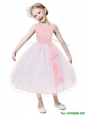 Popular Beaded Scoop Flower Girl Dress in Tea Length