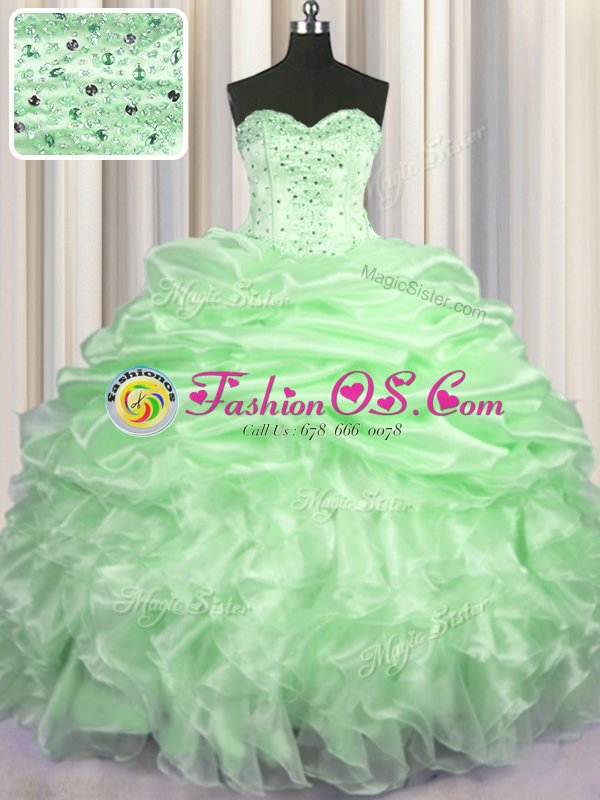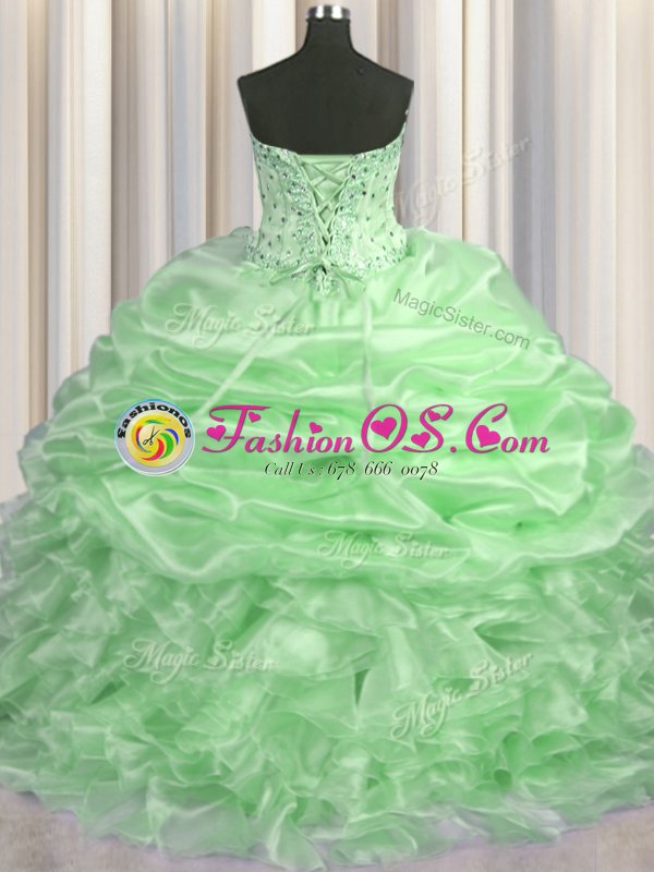 Home >  Quinceanera Dresses >  Fast Delivery Quinceanera Dresses > Popular Beading and Ruffles and Pick Ups 15th Birthday Dress Lace Up Sleeveless With Brush Train