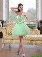 Popular Beading and Ruffles Apple Green Prom Dress for 2015