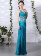 Popular Beading Prom Dresses with Brush Train and Spaghetti Straps