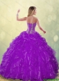 Popular Beading Purple Detachable Quinceanera Gowns with Sweetheart