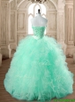 Popular Big Puffy Apple Green Quinceanera Dress with Beading and Ruffles