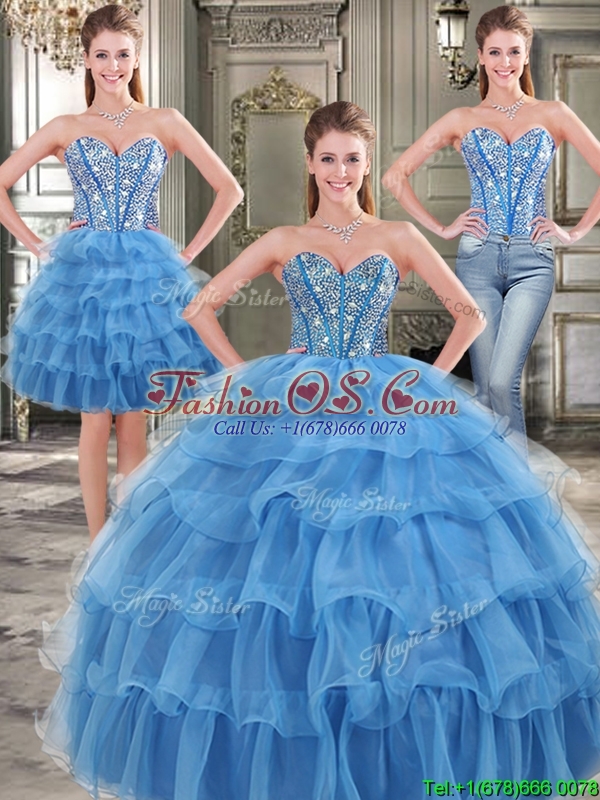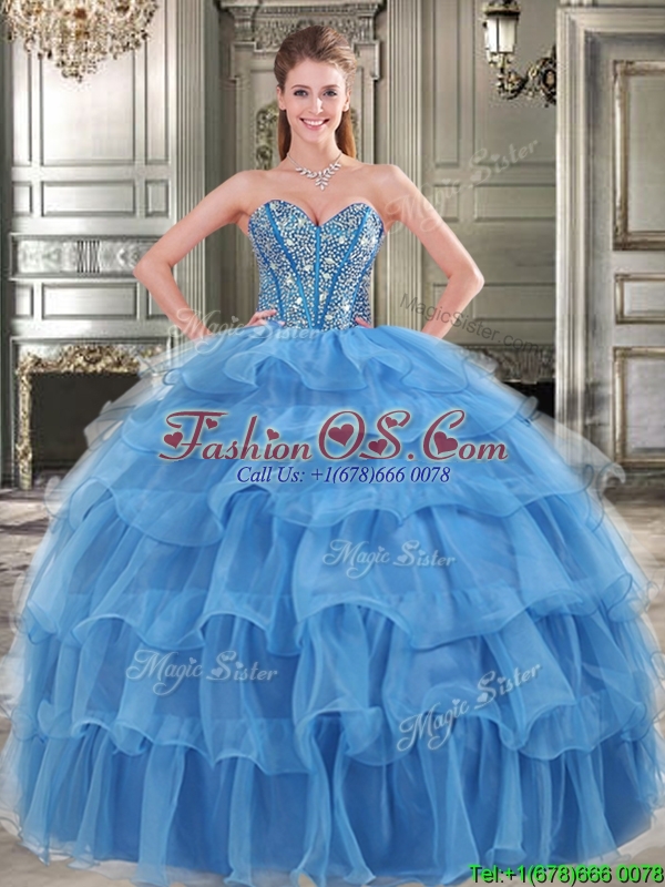 Popular Big Puffy Blue Detachable Tulle Quinceanera Dresses with Beading and Ruffled Layers