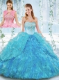 Popular Big Puffy Organza Detachable Sweet 16 Quinceanera Dress with Beading and Ruffles