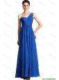 Popular Blue Empire One Shoulder Prom Dresses with Ankle Length