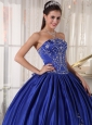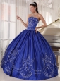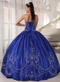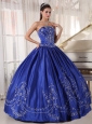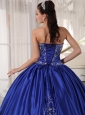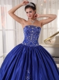Popular Blue Quinceanera Dress Strapless Satin Embroidery Ball Gown