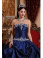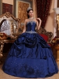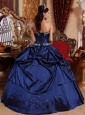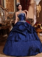 Popular Blue Quinceanera Dress Strapless Taffeta Beading Ball Gown