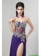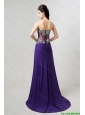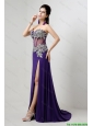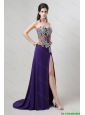 Popular Brush Train Prom Dresses with Beading and High Slit 2016