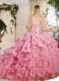 Popular Brush Train Quinceanera Dresses with Appliques and Ruffles