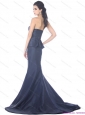 Popular Brush Train Sweetheart Beading Prom Dress in Navy Blue