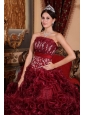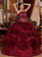 Popular Burgundy Quinceanera Dress Strapless Organza Appliques Ball Gown