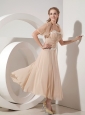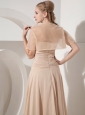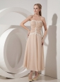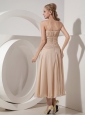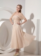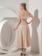 Popular Champagne Column Strapless  Mother Of The Bride Dress Chiffon Appliques Tea-length