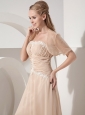 This tea-lenghth dress is fabulous with a jacket to complete it's elegence.The neckline of this strapless dress is decorated with floral applique details create a glamorous look while coordinate with the applique on the waistline and the middle of the bodice.Ruching with different paterns on the bust and waist give you a distingish look to flirt your shape.The flowing skirt with chiffon fabric make the dress fit you comfortable.A zipper up back completes the look.This dress is so gorgeous for you!