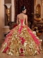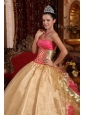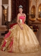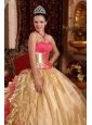 Popular Champagne Quinceanera Dress Strapless Organza Embroidery Ball Gown