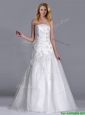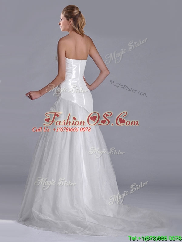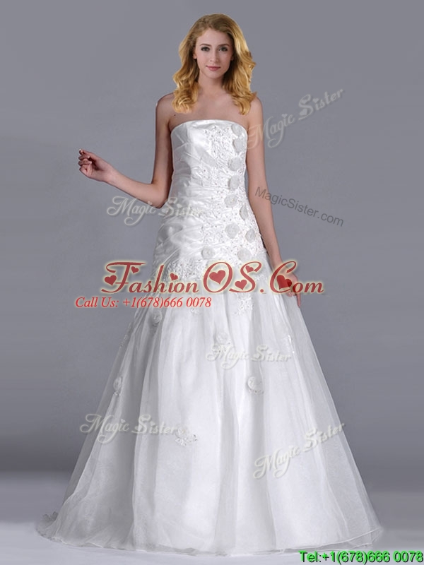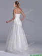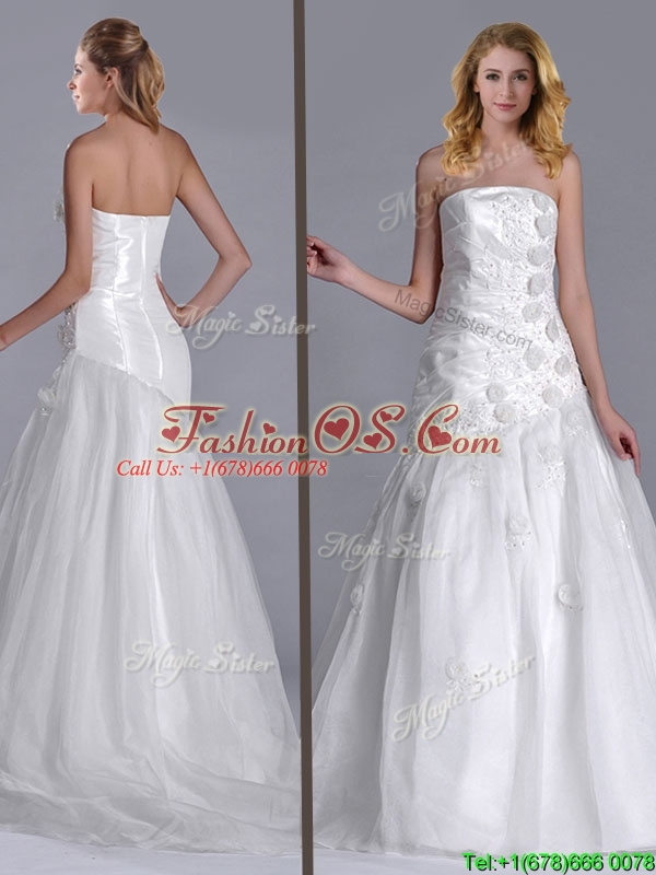 Popular Column Brush Train Wedding Dress with Beading and Hand Crafted