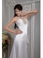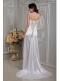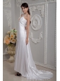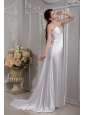 Popular Column Prom Dress Straps Elastic Woven Satin Beading and Ruch Brush Train