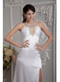 Home >  Prom Dresses >  Elegant Prom Dresses > Popular Column Prom Dress Straps Elastic Woven Satin Beading and Ruch Brush Train