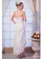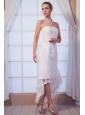 Popular Column Strapless High-low Satin Lace Wedding Dress