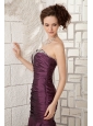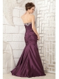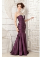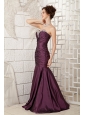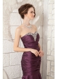 Popular Dark Purple Prom Dress Sweetheart Taffera Beading Brush Train