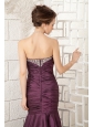This mermaid style dress is sure to catch eyes. With a sweetheart neckline embellished with shimmering beading, the dress looks even flattering.And The tightly ruched bodice makes the dress slim line, plus the classic purple color, the dress is the best choice for your prom.