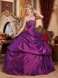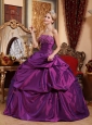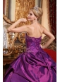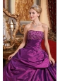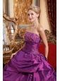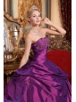 Home >  Quinceanera Dresses >  Sweet 16 Dresses > Popular Eggplant Purple Sweet 16 Dress Strapless Taffeta Beading and Appliques Ball Gown