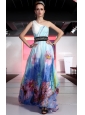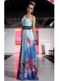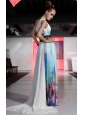Popular Empire One Shoulder Brush Train Printing Beading and Ruch Prom / Celebrity Dress
