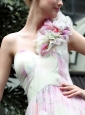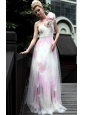 Popular Empire One Shoulder Floor-length Print and Tulle Handle Flowers Prom Dress