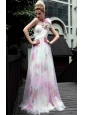Home >  Prom Dresses >  Discount Prom Dresses > Popular Empire One Shoulder Floor-length Print and Tulle Handle Flowers Prom Dress