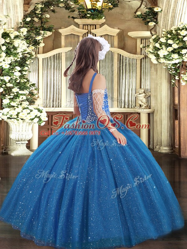 Popular Floor Length Brown Little Girls Pageant Gowns Tulle Sleeveless Beading