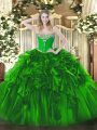 Popular Floor Length Lace Up 15 Quinceanera Dress Green for Military Ball and Sweet 16 and Quinceanera with Beading and Ruffles