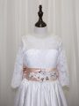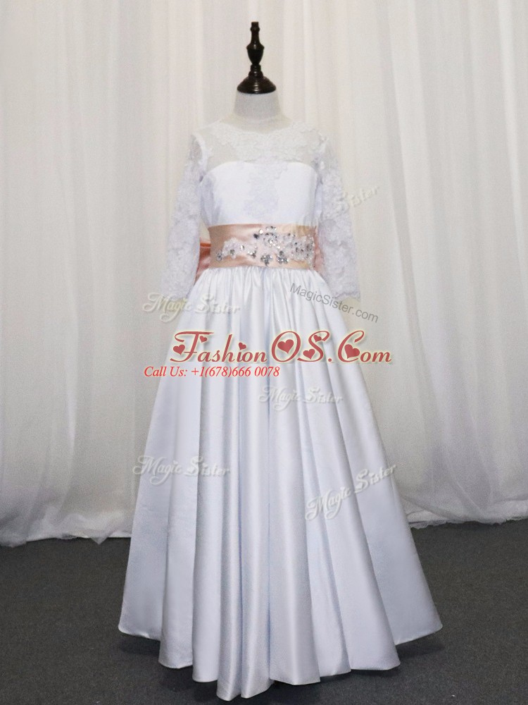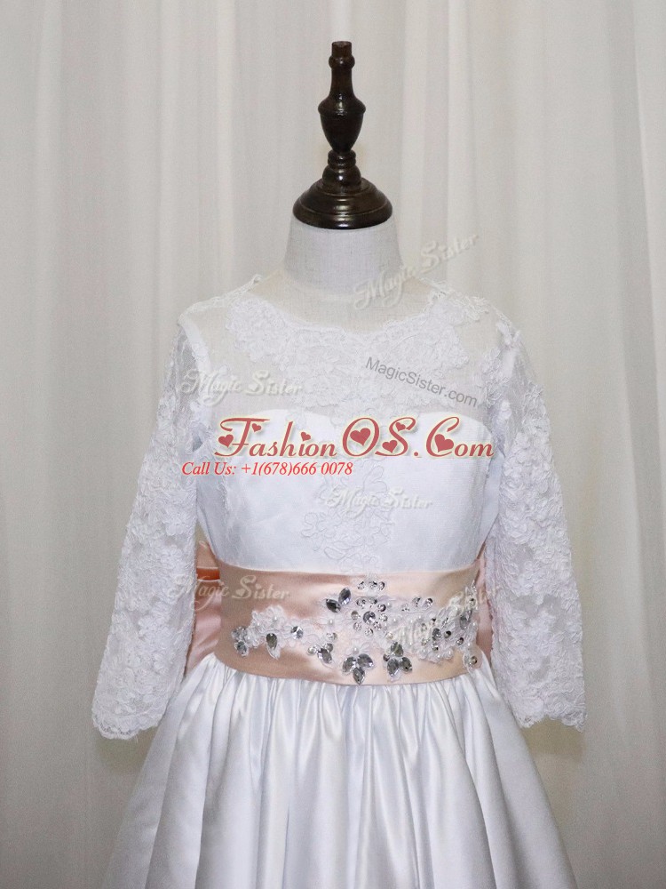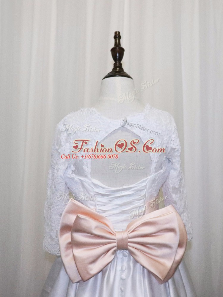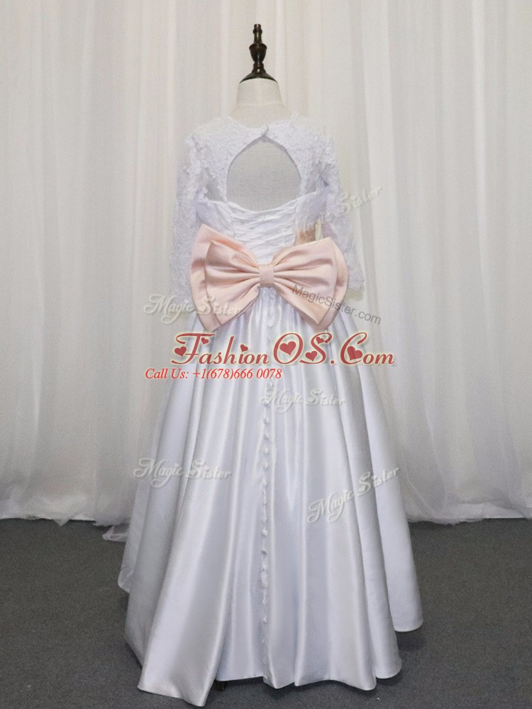 Popular Floor Length Lace Up Toddler Flower Girl Dress White for Wedding Party with Lace and Bowknot