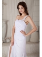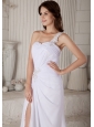 Popular Formal Column / Sheath One Shoulder  Beading Prom Dress Brush Train Chiffon