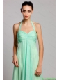 Popular Halter Top Brush Train Prom Dresses with Ruching